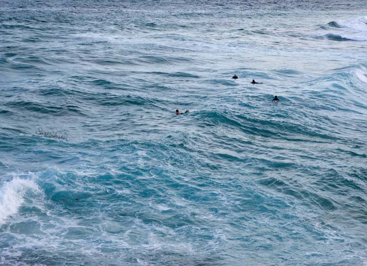Sunset, and there's always one more wave. It's Winter and the breeze has a chill. Boardriders at Tamarama Beach circle and wait for the next set ..