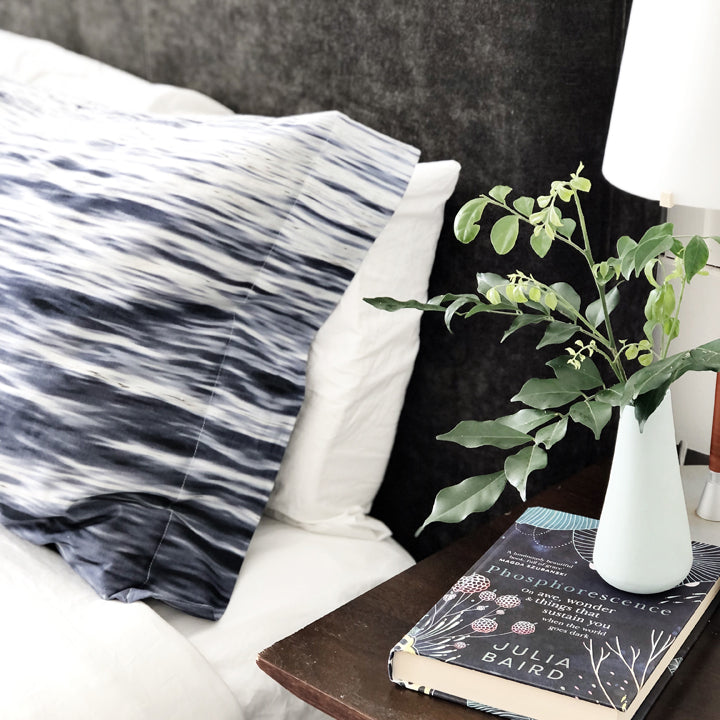 Add texture, depth and interest to your space with our range of linens for the home. Elevate the simplest of table settings to something really special with our pure linen napkins and placemats. With a choice of beautiful blues and moody sea-greys, you'll create a table that is casual, elegant, and speaks of the sea. Cushion covers and pillow cases in crisp linen and silky velvet bring a richness and warmth to your favorite rooms.  From dusky tones through to vivid, jewel-like colorways, they capture the intense and variable tones of the sea.   And our tea-towels? Well it's about time these work-horses were beautiful to behold. And indeed they are ..