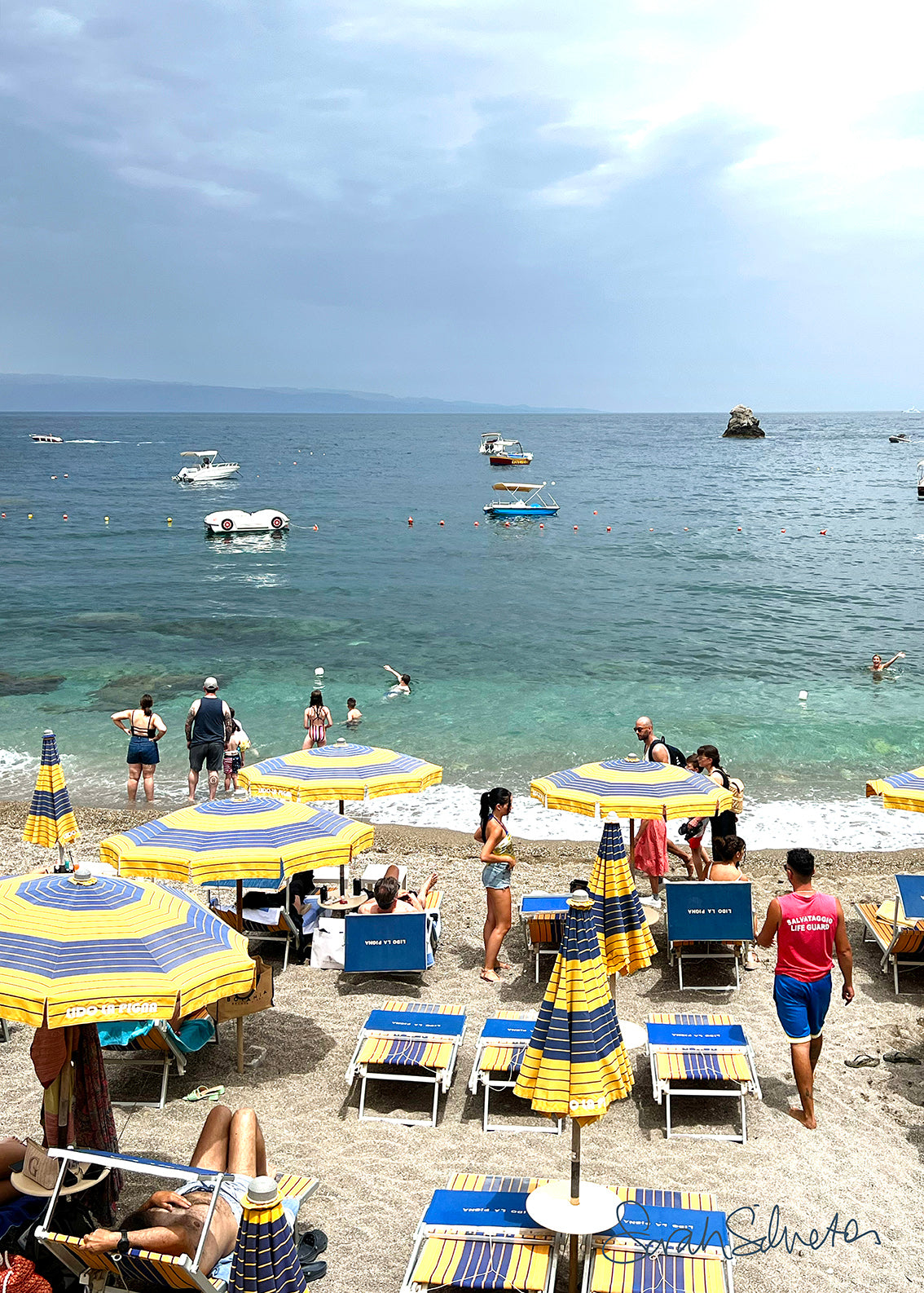 From the town of Taormina, you could take a steep walk down to Lido La Pigna, but we opted for the cable car and conserved our energy for the people watching, paddle boarding and sunset drinks at this lovely beachfront club.