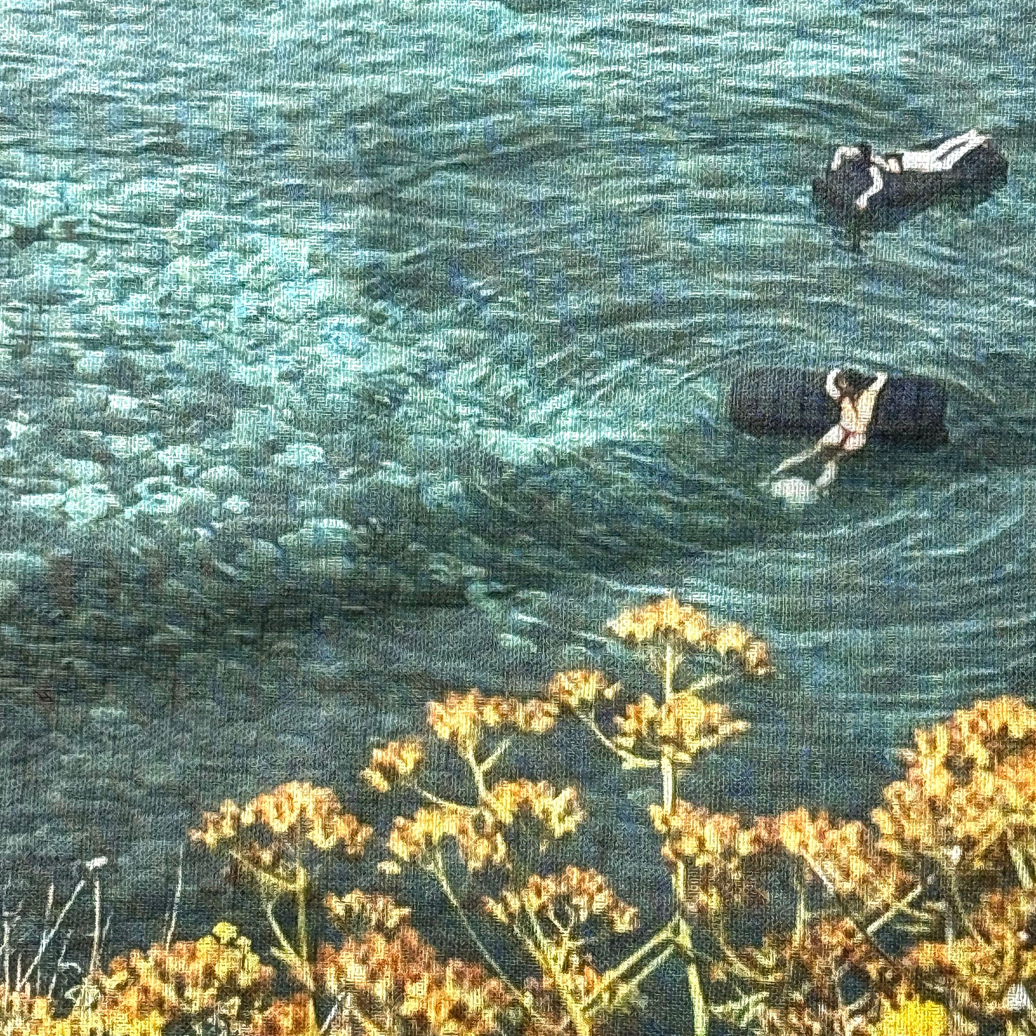 Each towel measures approx 66cm x 45cm (26in x 18in). Image framed by white border with artist's signature.